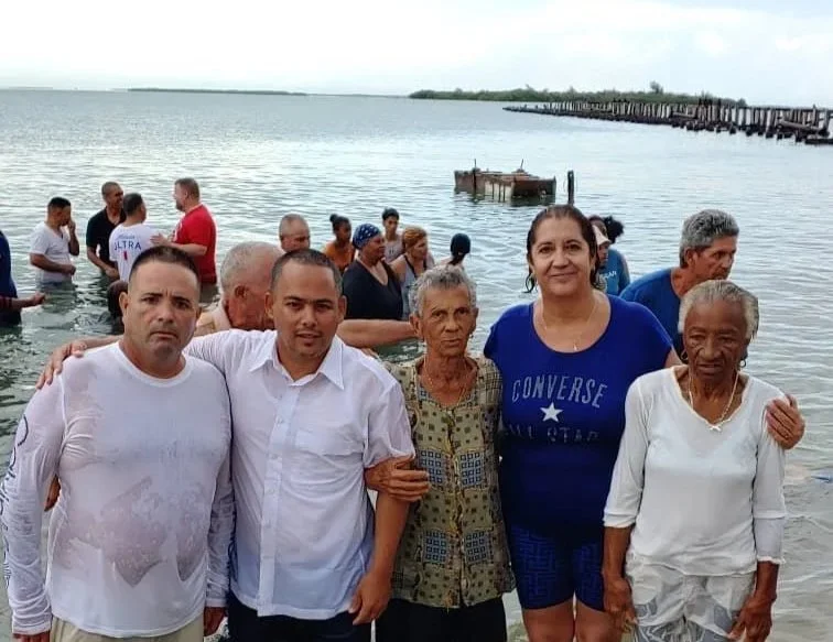 Pastor Sadiel (second from left) and newly baptized individuals