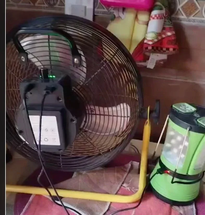 Using the solar fan to charge a lamp and also for charging phones
